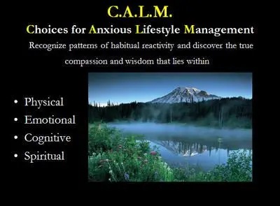 One last point. People recover. We have seen lots of recovery-but never without active involvement and practice. A major goal of the C.A.L.M. program is powerfully involving participants in their own recovery. You recover not by reading a book ort listening to a lecture, but by trying out and practicing new behaviors and ways of thinking. Take responsibility for your recovery. Do the work, make the changes, and practice those new skills and attitudes until they become part of you. You will not be disappointed.