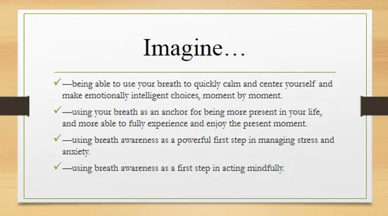e. I Have a Growing Awareness of My Breath. Having begun with the intention to pay more attention to my breathing (an intention continuously strengthened with daily practice), I find myself experiencing a greater awareness of my breath throughout the day.