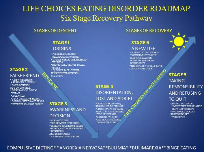 Those with an eating disorder need hope and hope comes from understanding that they do not have a “disease for life,” and that no matter how badly they feel at the present time, there is always a way to move beyond present misery toward a happier and more productive life in the future. They need a roadmap.